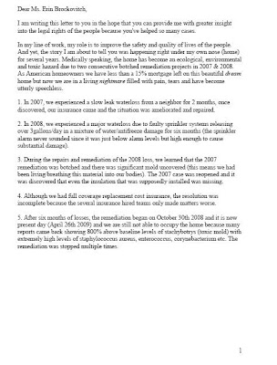 Black Mold & other biohazards at home (Letter to Erin Brockovitch) 2009-04-28
